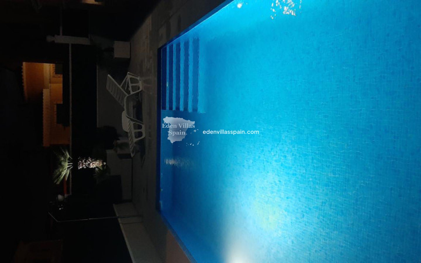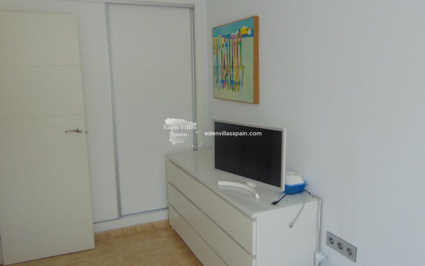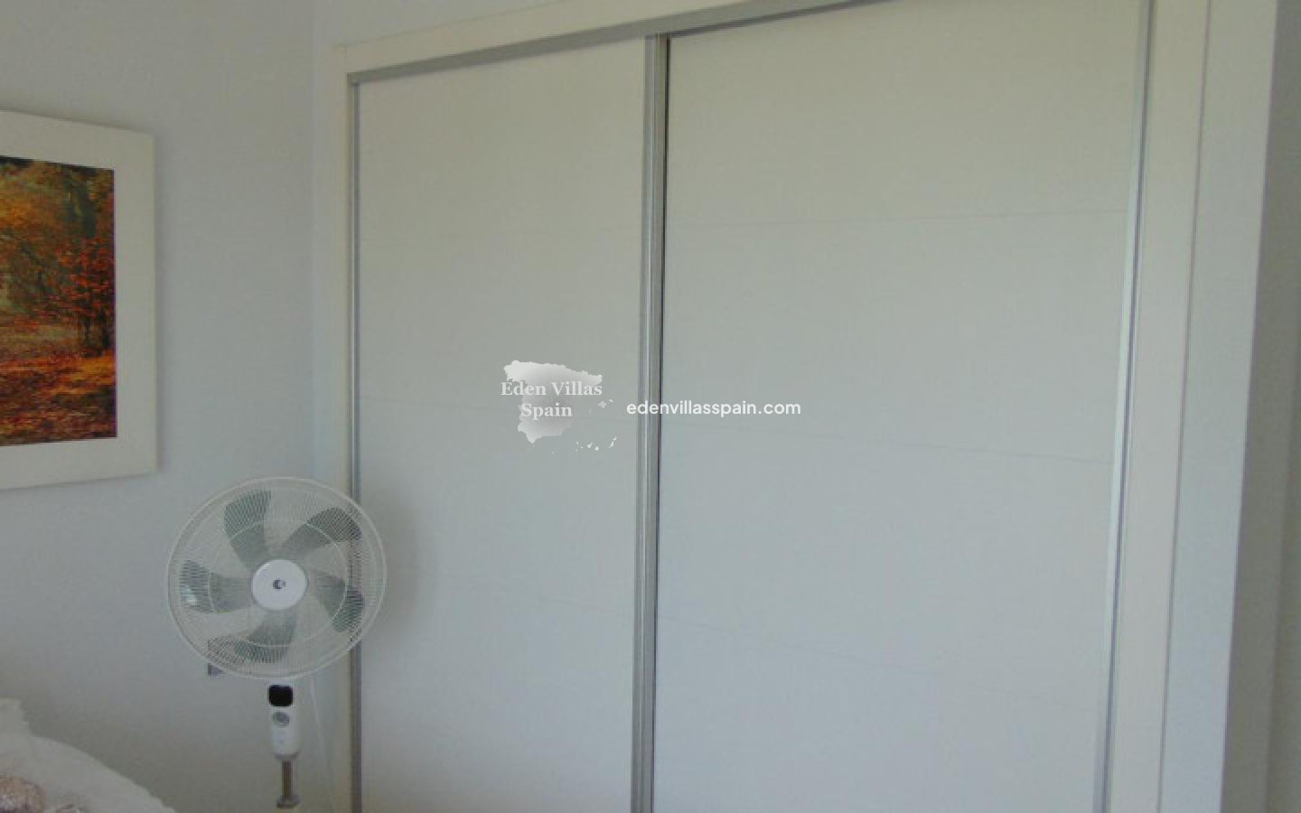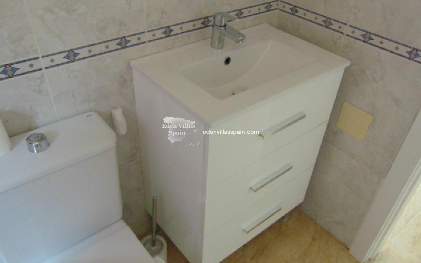 Se ingresa a la propiedad en un espacioso salón-comedor con aire acondicionado instalado y puertas de patio a la terraza solárium. Hay una cocina independiente bien equipada con una puerta de acceso trasera al área de la piscina o la escalera del solárium. Hay dos dormitorios de invitados con armarios empotrados y aire acondicionado instalado. Tiene un baño familiar con bañera y ducha, además de un dormitorio principal de buen tamaño con armarios empotrados, aire acondicionado y un maravilloso baño en suite (ducha a ras de suelo, lavabo e inodoro).