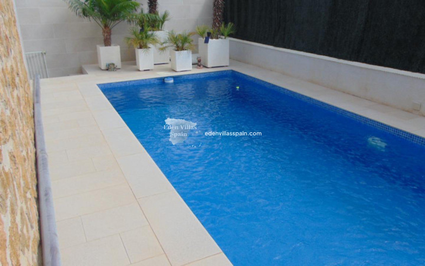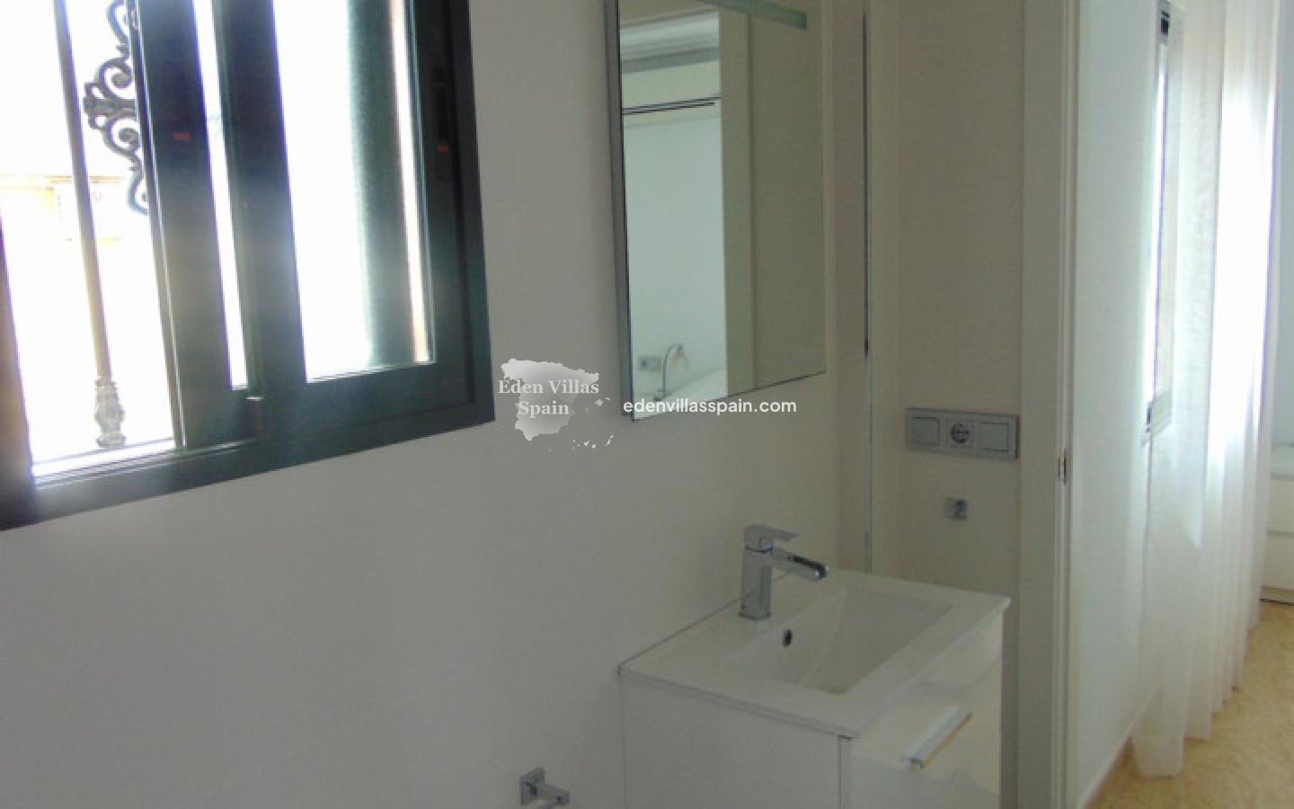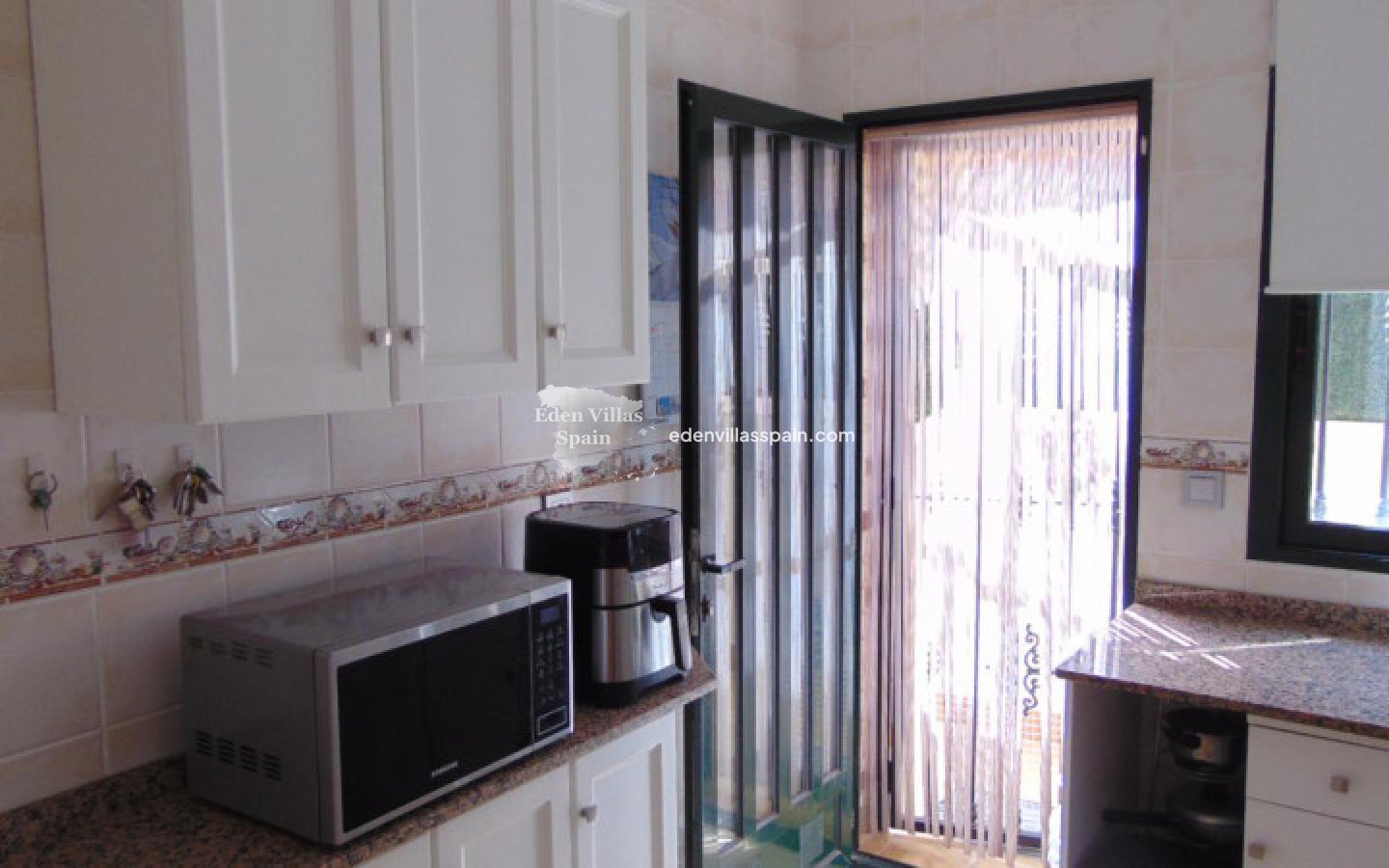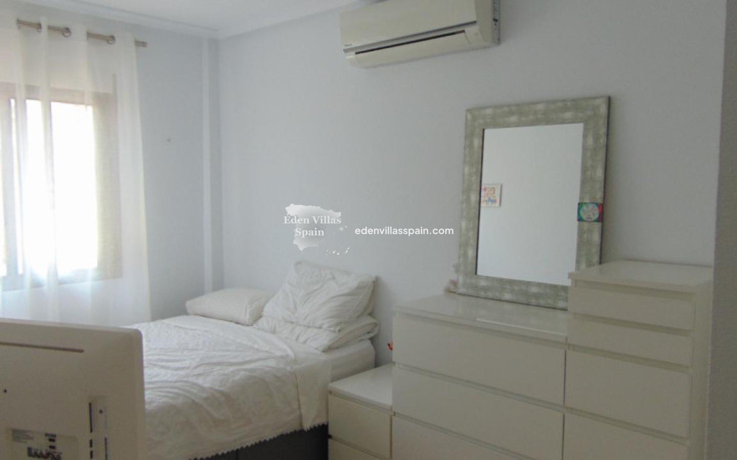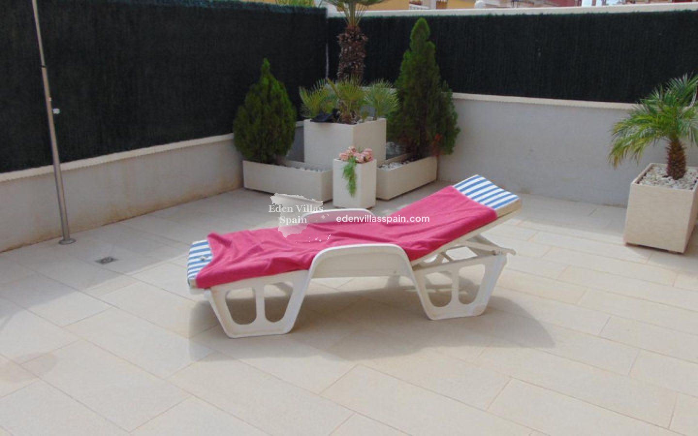 Se ingresa a la propiedad en un espacioso salón-comedor con aire acondicionado instalado y puertas de patio a la terraza solárium. Hay una cocina independiente bien equipada con una puerta de acceso trasera al área de la piscina o la escalera del solárium. Hay dos dormitorios de invitados con armarios empotrados y aire acondicionado instalado. Tiene un baño familiar con bañera y ducha, además de un dormitorio principal de buen tamaño con armarios empotrados, aire acondicionado y un maravilloso baño en suite (ducha a ras de suelo, lavabo e inodoro).