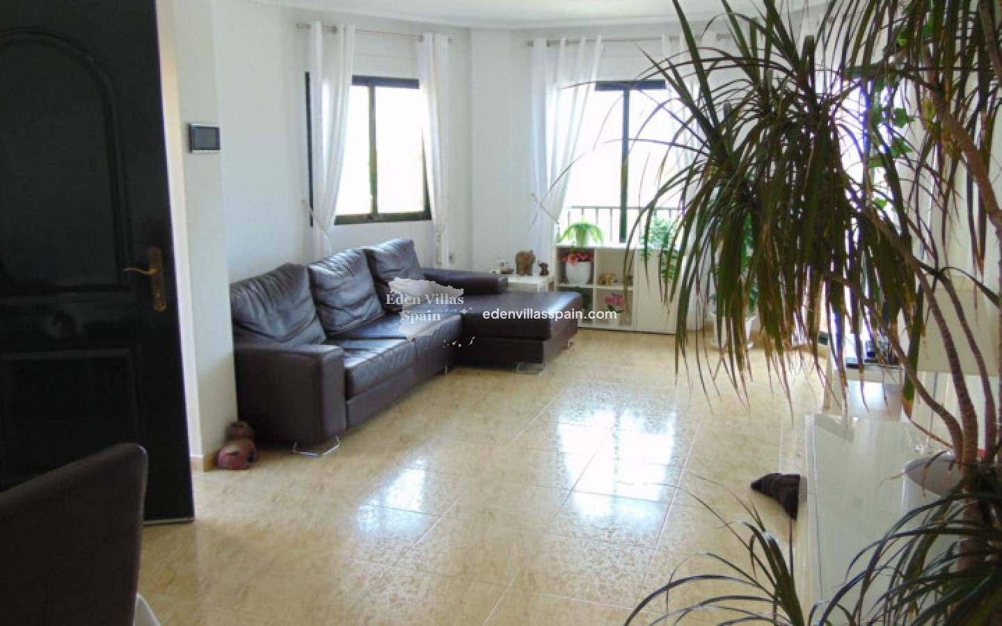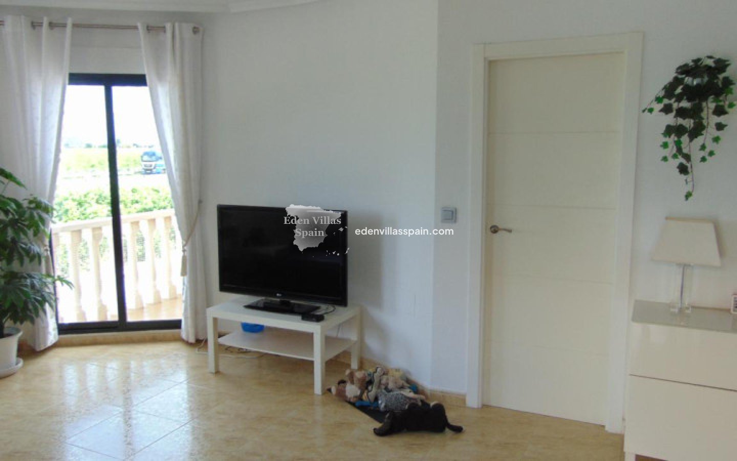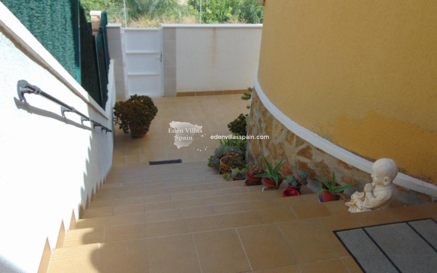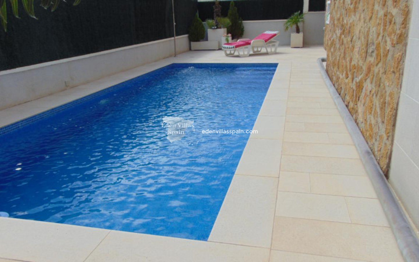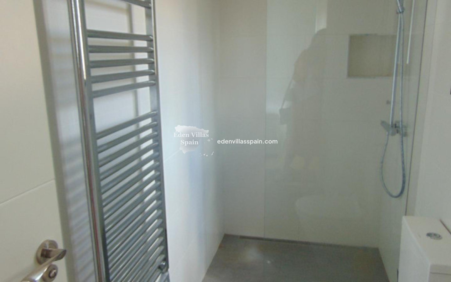 Se ingresa a la propiedad en un espacioso salón-comedor con aire acondicionado instalado y puertas de patio a la terraza solárium. Hay una cocina independiente bien equipada con una puerta de acceso trasera al área de la piscina o la escalera del solárium. Hay dos dormitorios de invitados con armarios empotrados y aire acondicionado instalado. Tiene un baño familiar con bañera y ducha, además de un dormitorio principal de buen tamaño con armarios empotrados, aire acondicionado y un maravilloso baño en suite (ducha a ras de suelo, lavabo e inodoro).