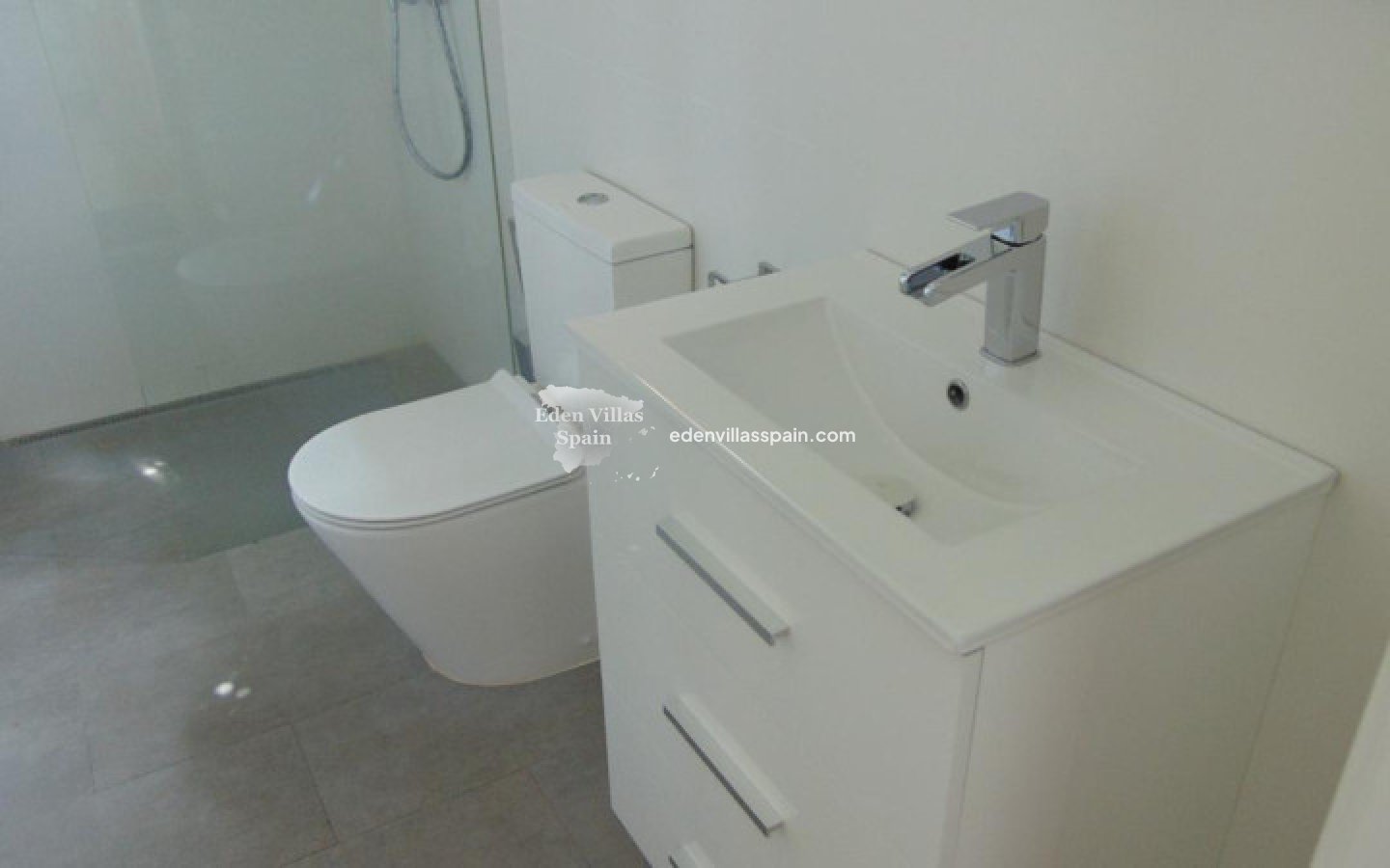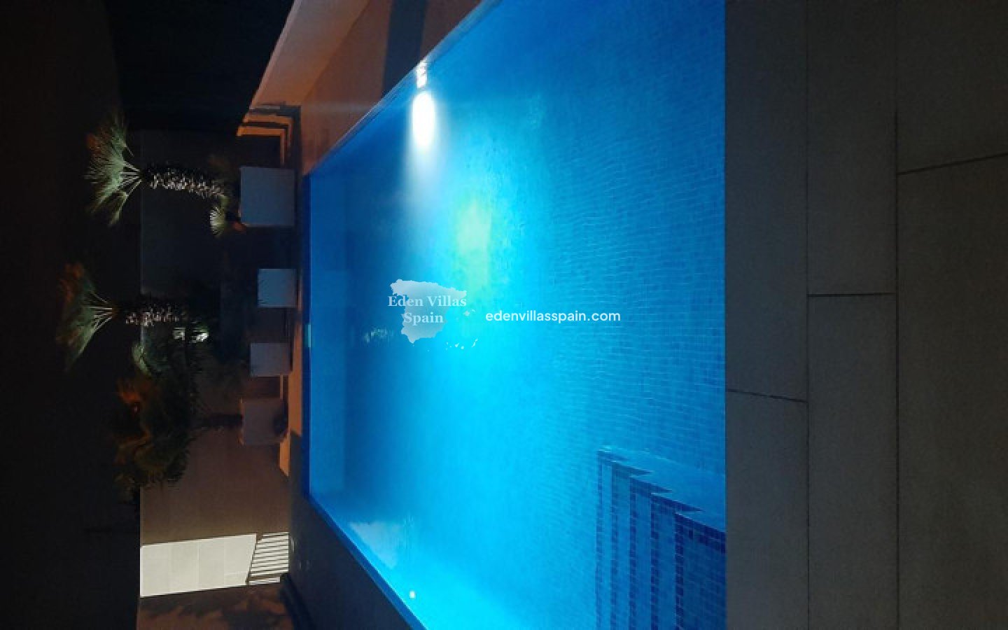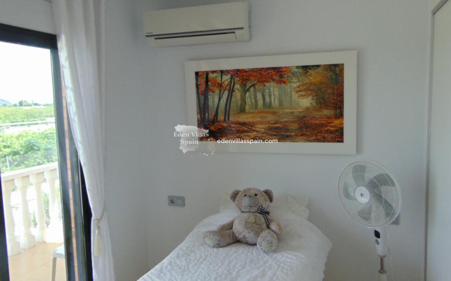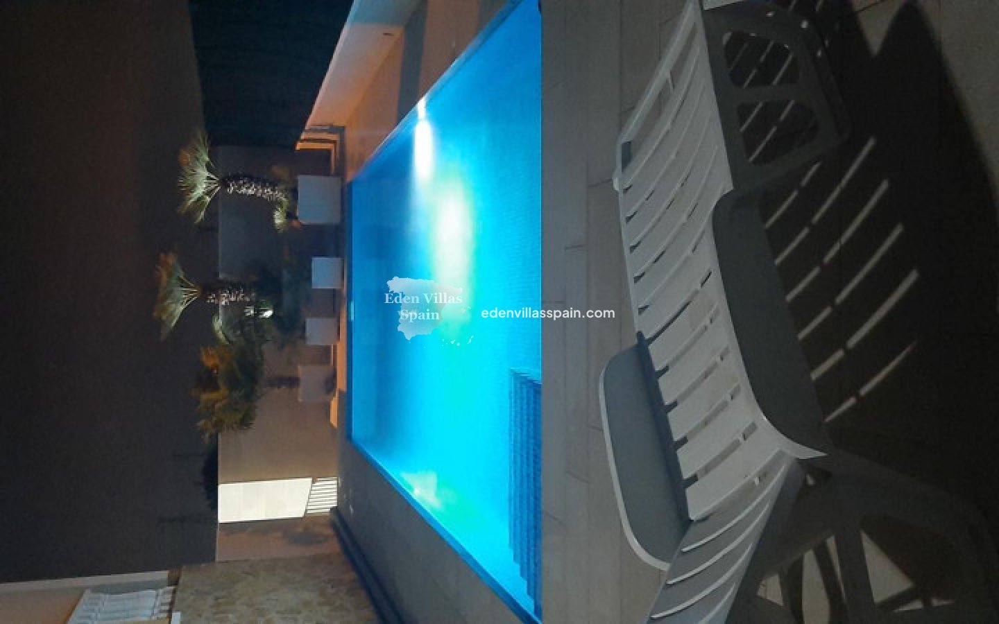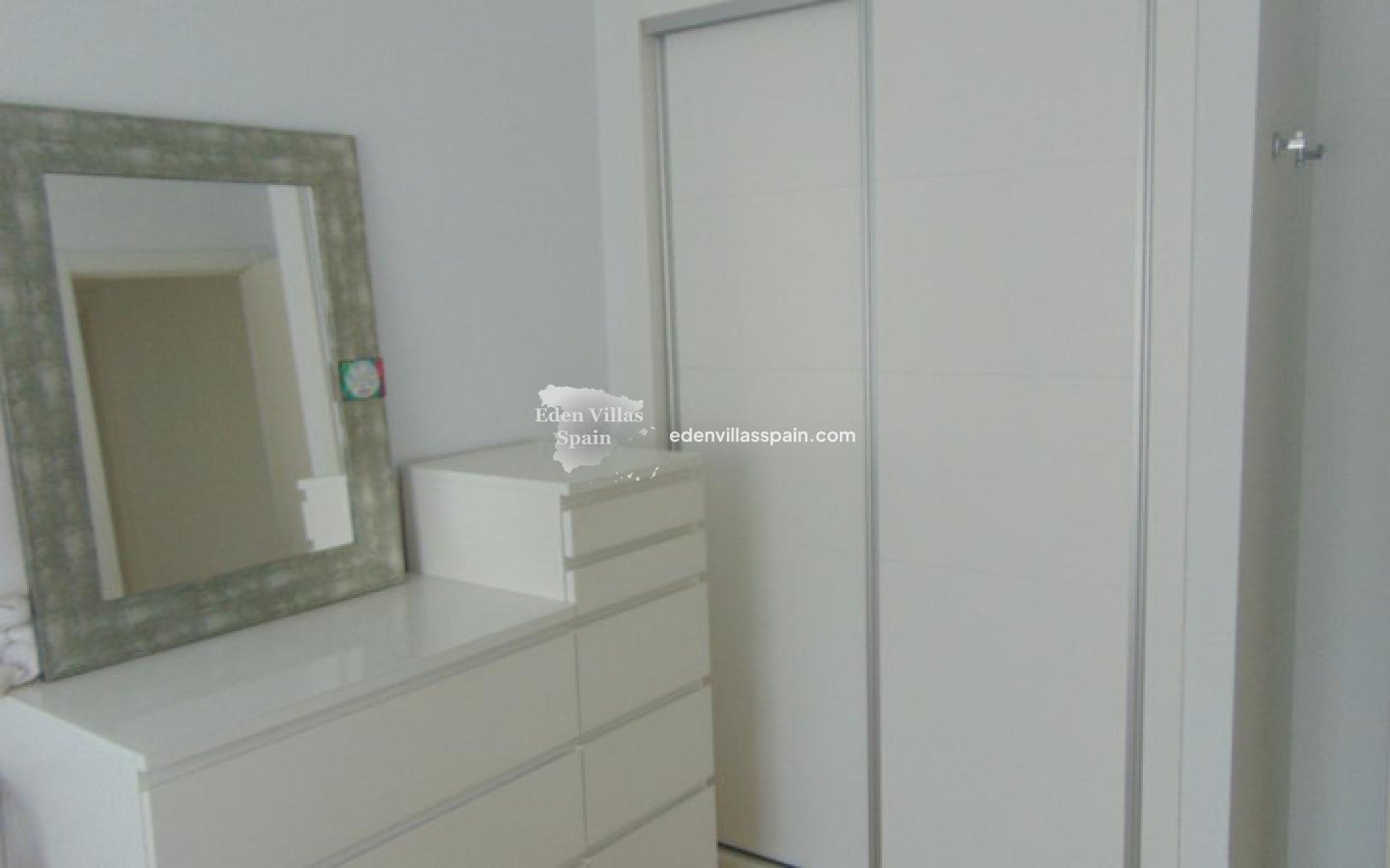 Se ingresa a la propiedad en un espacioso salón-comedor con aire acondicionado instalado y puertas de patio a la terraza solárium. Hay una cocina independiente bien equipada con una puerta de acceso trasera al área de la piscina o la escalera del solárium. Hay dos dormitorios de invitados con armarios empotrados y aire acondicionado instalado. Tiene un baño familiar con bañera y ducha, además de un dormitorio principal de buen tamaño con armarios empotrados, aire acondicionado y un maravilloso baño en suite (ducha a ras de suelo, lavabo e inodoro).