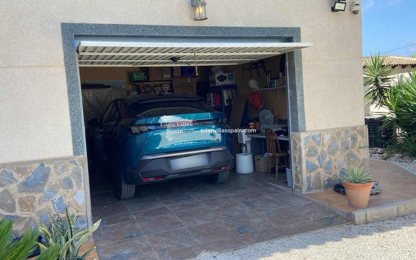 Hay un refugio para autocaravanas de 6,50 x 3,50 m con iluminación nocturna. Hay un garaje de 42 m² con taller y solárium encima.
