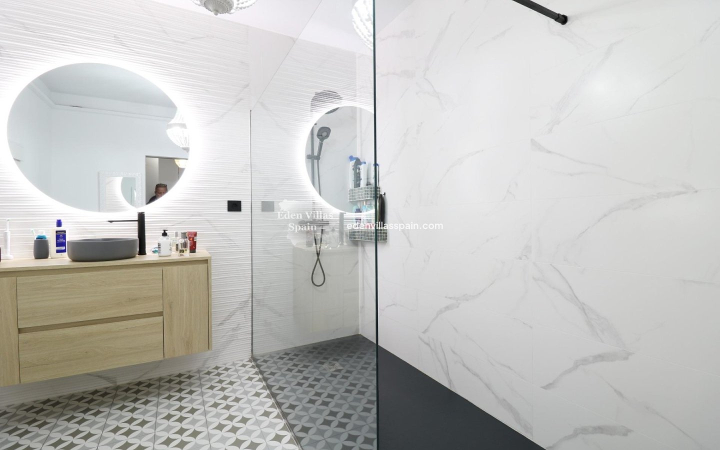 1 moderno baño completo y 1 aseo exterior para zona piscina.