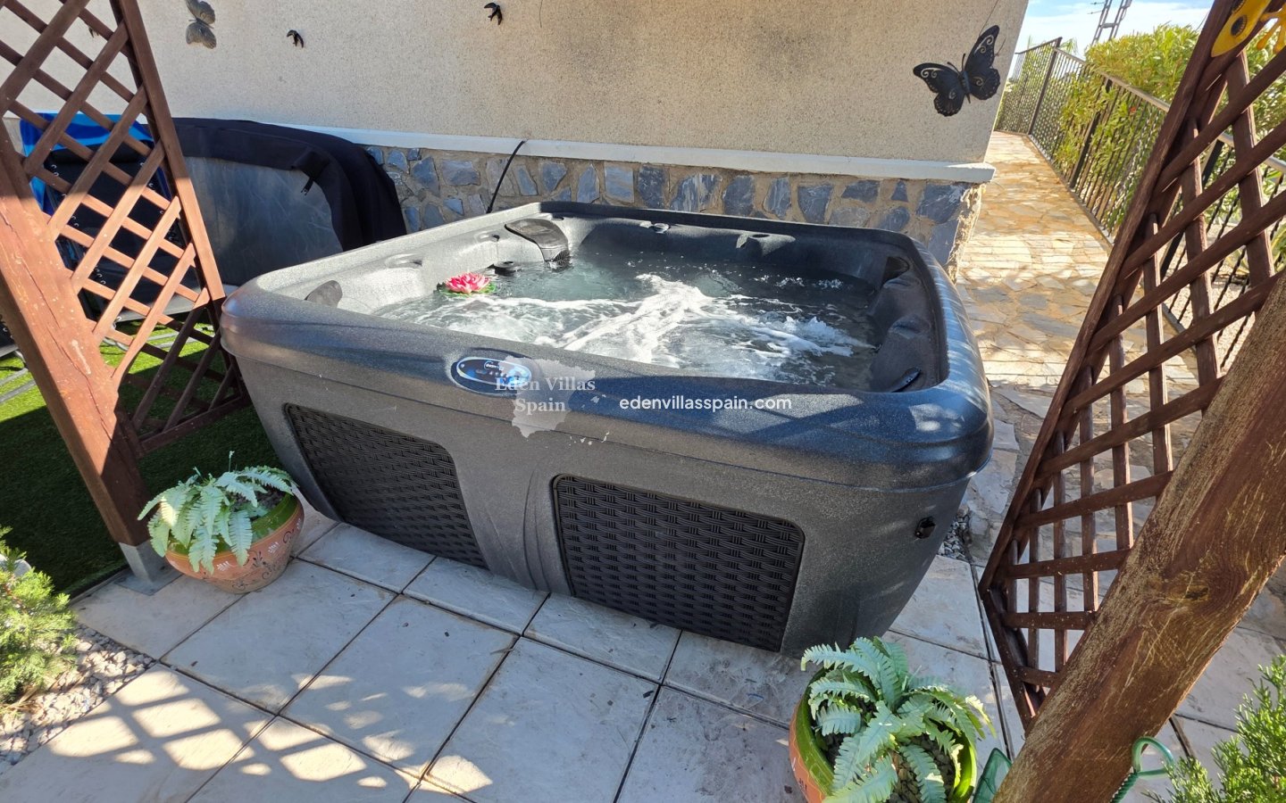 La parcela de 1.389 m² es llana y está completamente vallada, y cuenta con jardines con terrazas con palmeras, árboles frutales, plantas y árboles ornamentales. En el jardín hay un jacuzzi con pérgola y un trastero.