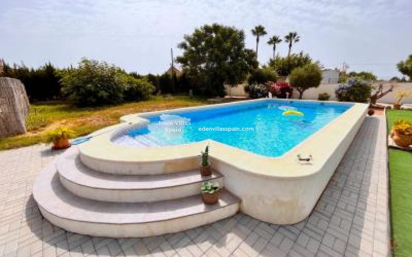 Le terrain de 2 600 m² est plat et entièrement clôturé et il y a une piscine privée de 10 mx 5 m avec terrasse ensoleillée, un espace pergola et une place de parking. L'intrigue nécessite très peu d'entretien.