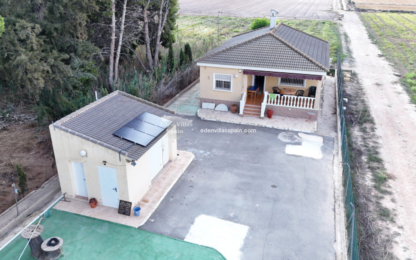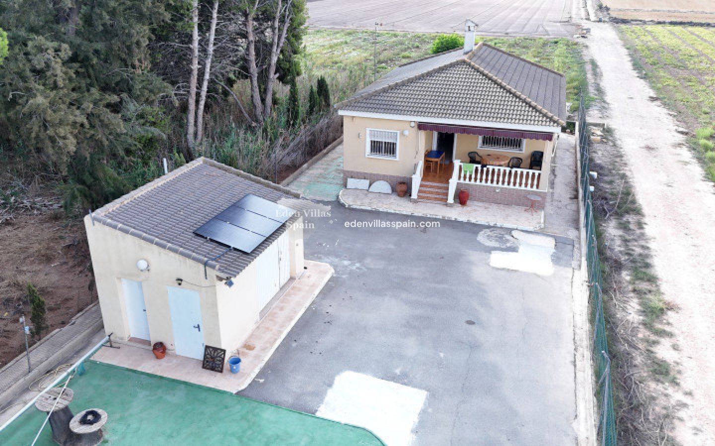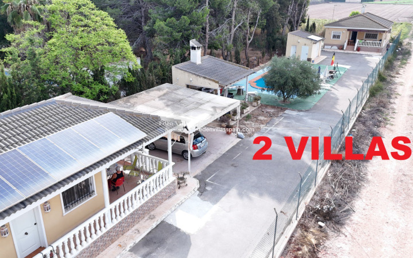 Cette propriété a deux villas sur le même terrain et est idéale pour vivre deux familles séparées sur le même terrain partageant la piscine et la cuisine d'été. La propriété est située à distance de marche de la ville avec toutes les commodités et à 10 minutes en voiture des plages (plages de La Marina, Guardamar del Segura…).