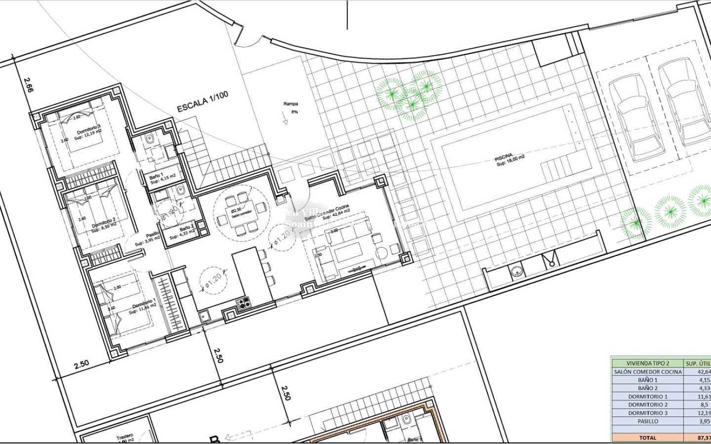 Villa d'un étage à Polop, Costa Blanca, Alicante3 chambres doubles, 2 salles de bains avec chauffage au sol, dont une en suite. 100 m2 construits sur un seul étage, tous avec accès extérieur et espace piscine. 400 m2 de terrain à apprécier. Il est distribué dans le salon - cuisine entièrement équipée, 3 chambres doubles et 2 salles de bains, toutes deux avec système de chauffage au sol.La pré-installation de la climatisation et les meilleures finitions du marché vous feront profiter de tout le confort que vous méritez dans un environnement authentiquement méditerranéen. De plus, le spectaculaire solarium de 60m2 avec accès direct depuis le jardin vous séduira par ses couchers de soleil et sa vue sur la Méditerranée. Sa conception architecturale et sa large distribution sur un seul étage permettent à toutes les pièces d'avoir un accès direct à la piscine privée et à l'espace barbecue grâce à d'immenses fenêtres.A mi-chemin entre le Sleeping Lion Peak et la baie d'Altea, Polop de la Marina est la commune qui abrite notre commune. Situé dans un quartier résidentiel calme, entouré d'un environnement incomparable. Grâce à son emplacement, à quelques minutes des meilleures criques et plages de sable blanc (El Albir, Altea, Calpe et Villajoyosa) et à proximité d'excellents terrains de golf, centres sportifs et parcs à thème. EXTRAS NON INCLUS DANS LE PRIX :Machine de climatisation 3 800 €Portail d'entrée automatique 900 €Eclairage LED 1 500 €Appareils électroménagers 3 000 €Jardin 2 500 €Meubles 15 000 €