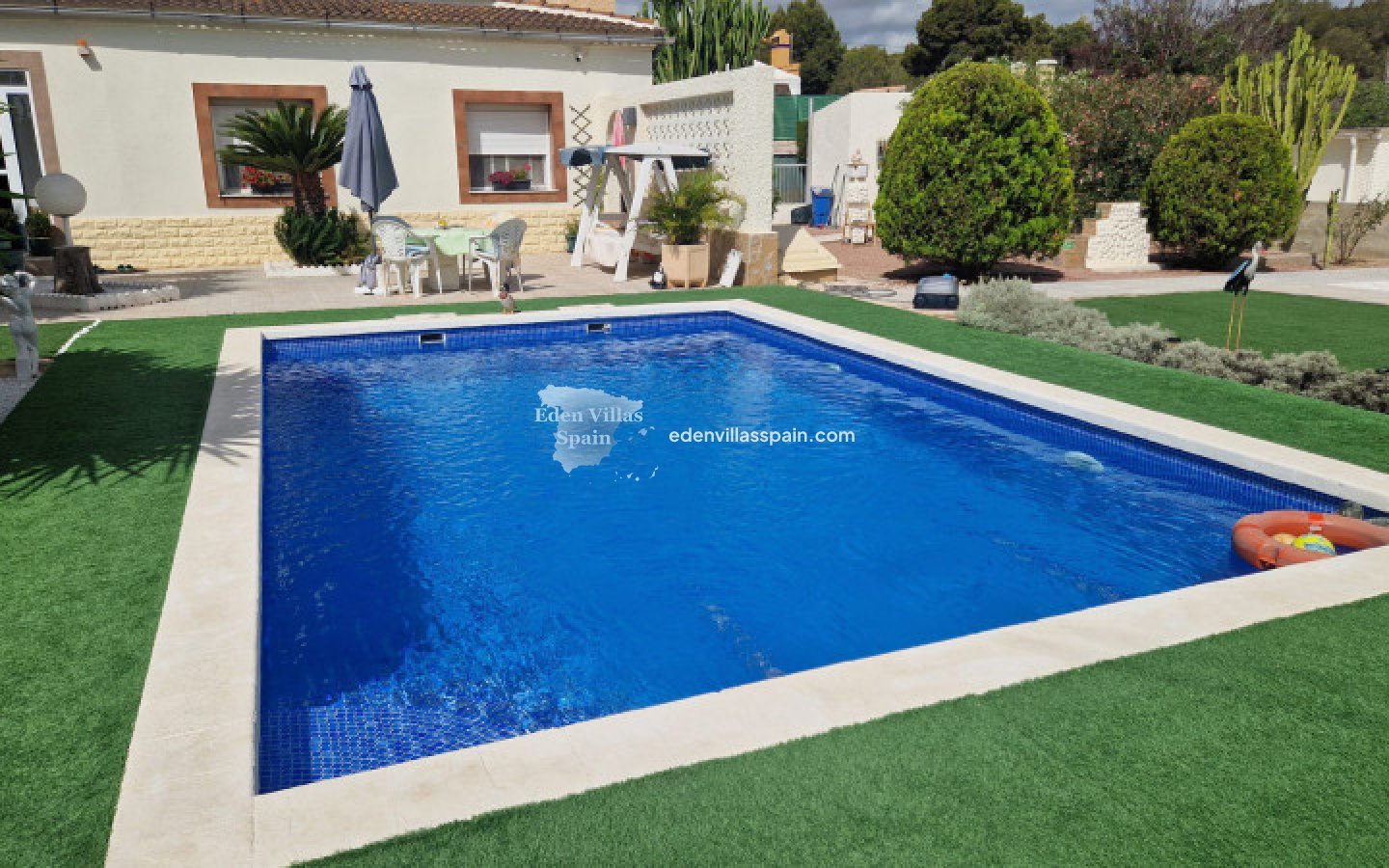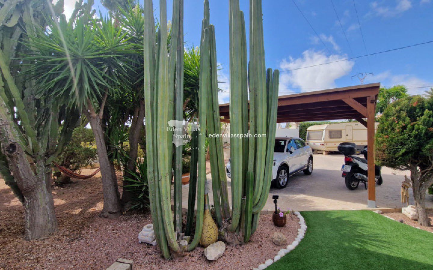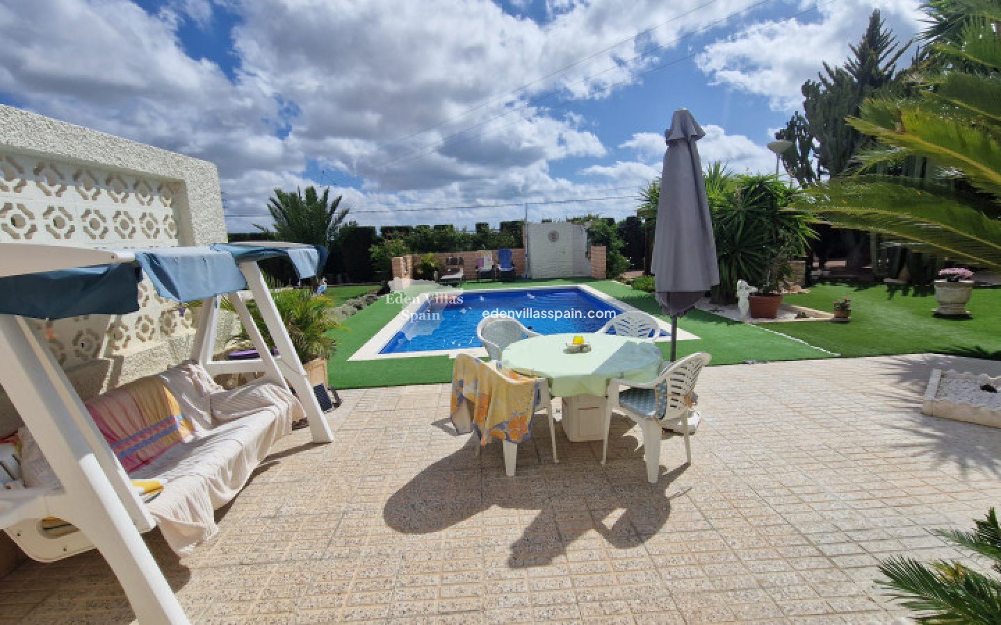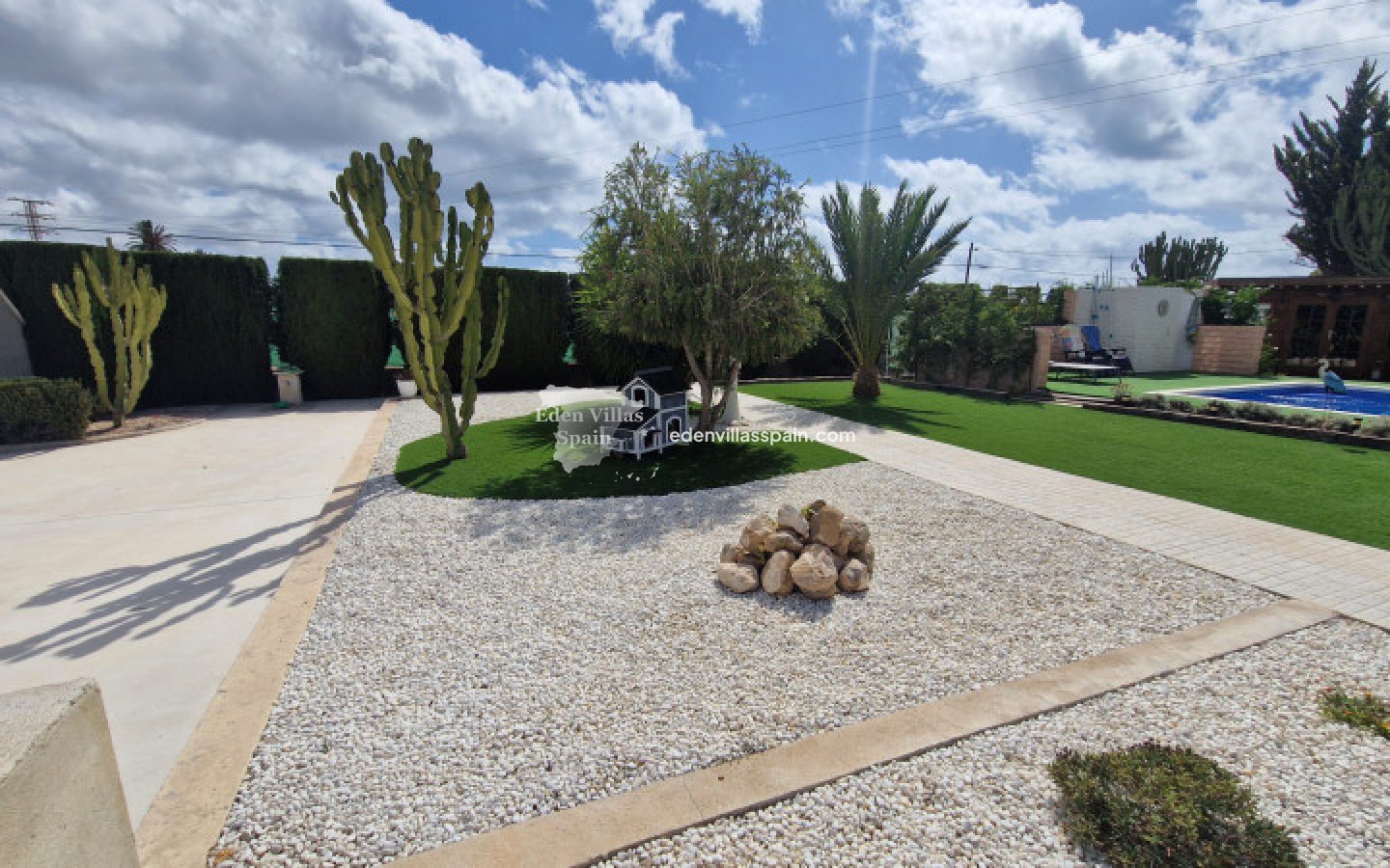 Deze prachtige villa heeft een privézwembad, gastenverblijf en garage/werkplaats en ligt op slechts 5 minuten rijden van de stranden van La Marina (2 km afstand).