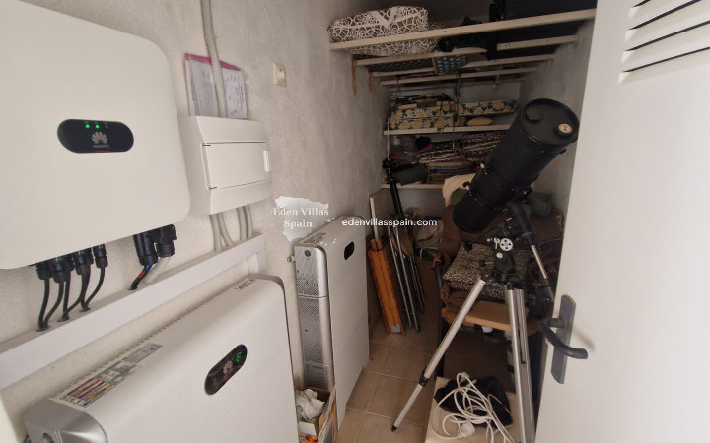 De woning heeft elektriciteit, zonnepanelen, leidingwater, airconditioning, plafondventilatoren, elektrische poort, buitenverlichting, 7 camera's met alarmsysteem, een caravan.